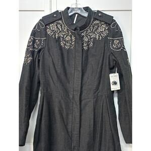 NEW Free People Charcoal Gray Embellished Embroidered Sergeant Coat Sz 6 $248