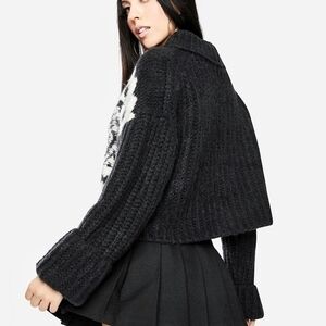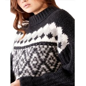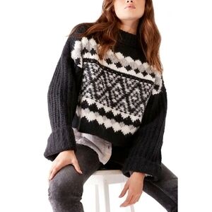 So chic and cozy, this timeless pullover is featured in a chunky knit design with colorful detailing at front in a boxy, cropped silhouette with wide sleeves for added shape.