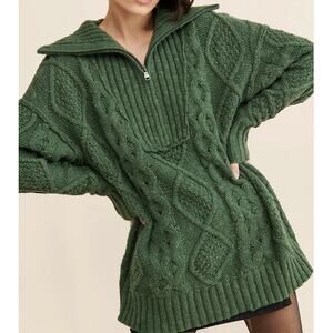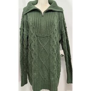 NEW Free People Driftwood Cable Knit Polo Oversized Green Zip Sweater Dress M
