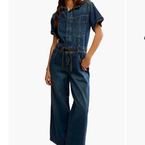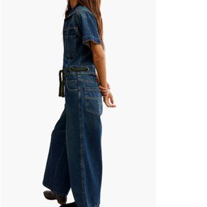 NEW Free People Edison Coveralls - Short Sleeve Cerulean Skies 252