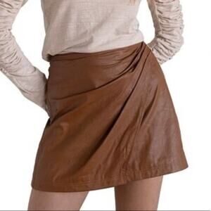 NEW Free People Fake Out Brown Faux Leather Vegan Wrap Skirt Size 2