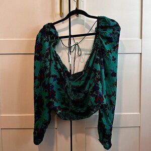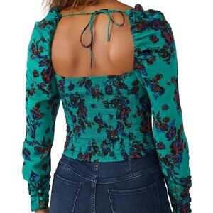 NEW Free People Floral Print Keyhole Neck Top in Green Combo- size XL