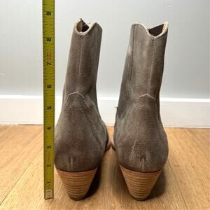 Coming from a clean and smoke-free home. Selling as pictured. See photos for measurements and details. Distressed leather/suede construction. The distressing is part of the look/style of the boots. Slight price sticker residue left on the bottom of the boots