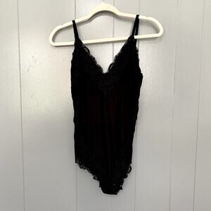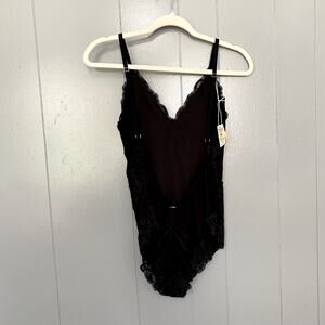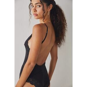 NEW Free People HAH Noir Black Back Off Floral Lace Lingerie Cheeky Bodysuit L