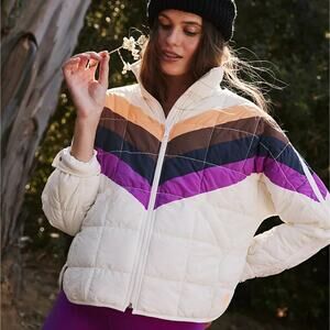 NEW Free People Hatch Printed Puffer Jacket Ivory Chevron Combo Maternity SMALL