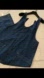 Features: Denim fabrication, rigid feel, low scoop neckline, seam detail throughout, oversized patch pockets, drop-crotch harem-style legs, low back with adjustable shoulder straps