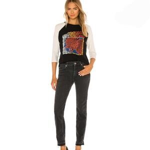 NEW Free People High Waisted Released Frayed Hem Slim Boyfriend Jean Faded Black