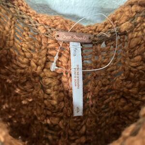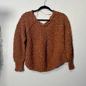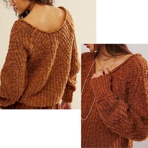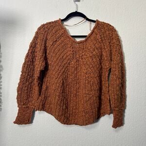 NEW Free People In A Swirl Chunky Pullover Sweater Cinnamon Brown Blouson Sleeve