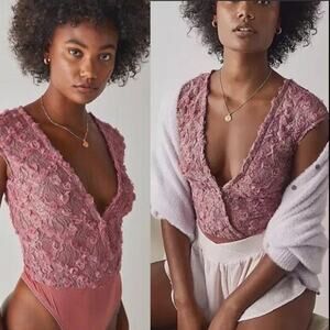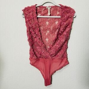 NEW Free People Intimately 2 Haute 2 Handle Pink Rosette Bodysuit Small