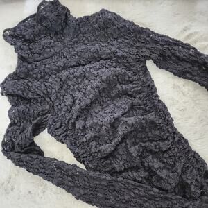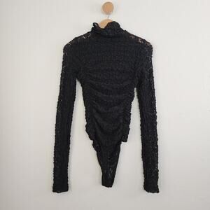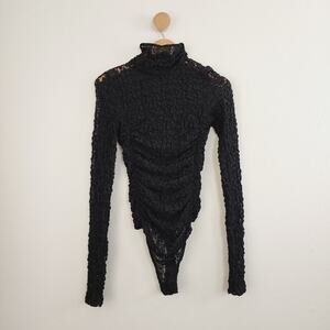 Free People Intimately Free Black Lace Day and Night Turtleneck Long Sleeve Knit Bodysuit