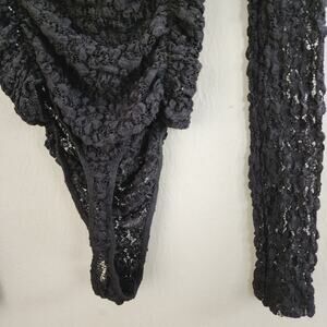 NEW Free People Intimately Free Black Lace Day and Night Long Sleeve Bodysuit