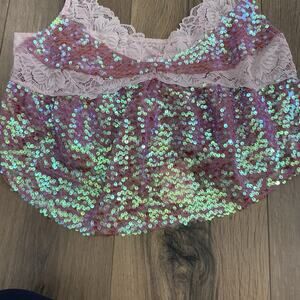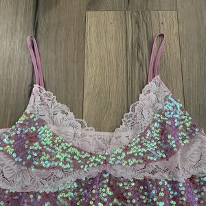 NEW Free People Intimately Right Rhythm Sequin Cami Sz Small Lollipop Pink Combo