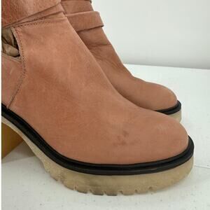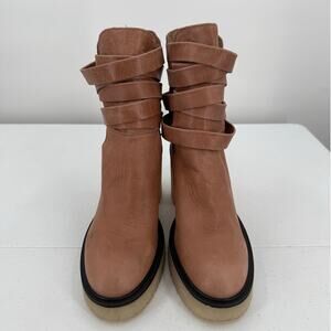 NEW Free People Jesse Distressed Brown/Beige Leather Cutout Heeled Boots Size 39