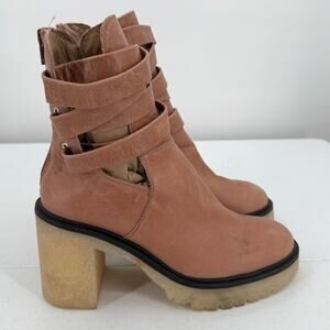 Free People Jesse Distressed Brown/Beige Leather Cutout Heeled Boots