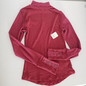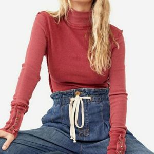 NEW Free People JoJo Long Sleeve Ribbed Thermal Snap Cuff Top in Hot Pink