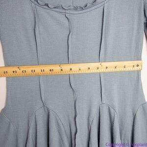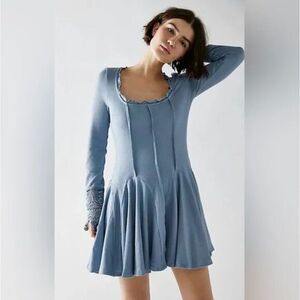NEW Free People Little Love Thermal Mini Dress long sleeve scoop neck knit sweater dress crochet sleeve, M