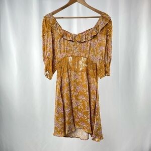 NEW Free People Lucie Mini Dress in Brown Multi Size 8