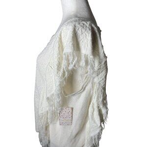 NEW Free People M Ivory Textured Fringe Knit Tank Top Sweater Boho Chic Design