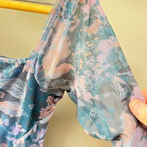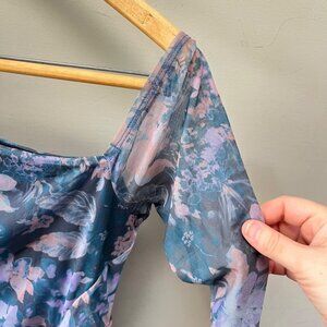 NEW Free People Midnight Combo Floral Mesh Ruched Bodycon Dress Long Sleeve Size