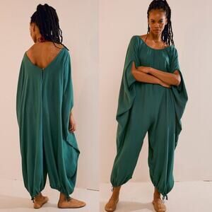 NEW Free People Milo One-Piece Jumpsuit Hunter Green XS Extra Small Oversized Linen Blend Billow Boho