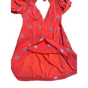 🌺NEW Free People Mockingbird Coral Red Floral Print Backless Mini Dress Sz 6