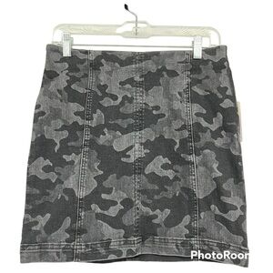 NEW Free People Modern Femme camo print denim mini skirt Size 8