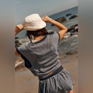 NEW Free People Movement Good Sport Cropped Tee Blue Lace Blue Size Small NWT