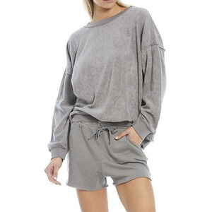 Bring edgy style to your next workout in this oversized washed shirt and distressed shorts set. Sweatop - Jewel neckline, Dropped long sleeves, Relaxed fit, Banded hemline, Pullover construction, Polyester/rayon/cotton. Shorts - Elastic waist, Raw edge hem, Double side pockets, Drawstring closure, Polyester/rayon/cotton. COZY COZY COZY!