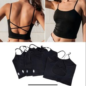 NEW Free People Movement Strappy Back Tighten Up Tank Top - New without tags - Size XS/S - Color: Black - Rounded neckline - Cropped fit. Ribbed performance tank featuring a cut out back with crisscross details and a cropped fit.