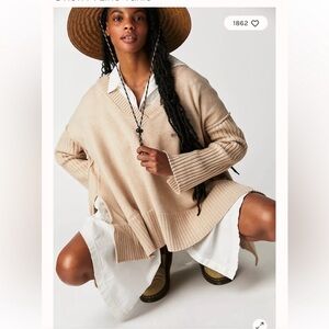 NEW Free People Orion A Line Tunic Almond Cream Sweater M