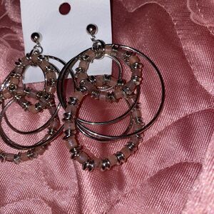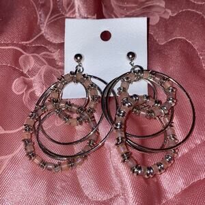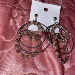 NEW Free People Pink Silver Racer Hoops Beaded Metal Dangling Post Backs