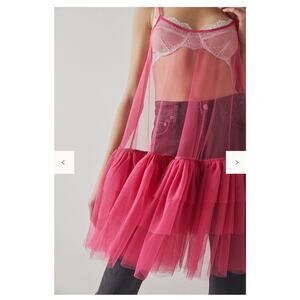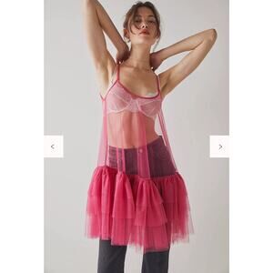 NEW Free People Please Send Mini Slip Dress Tulle Sheer Pink