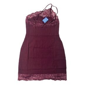 NEW Free People Premonitions Bodycon Mini Dress Size M Plum Purple Lace