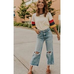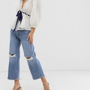 NEW Free People Ranger Denim Distressed Wide Leg Button Fly Jeans Big Sur 26