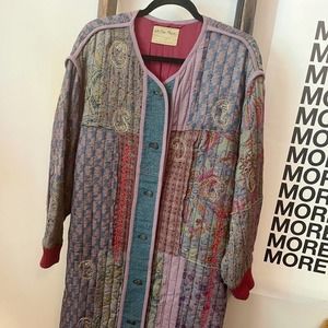 Features: Turn heads in this forever timeless coat featured in a longline, button-front silhouette with defined, paisley-printed patching throughout for added dimension.