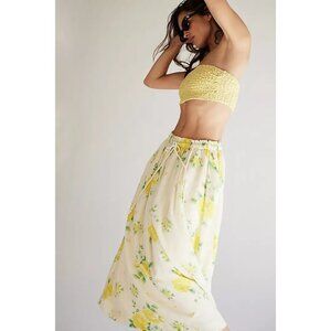 NEW Free People Seaside Rose Skirt Womens S Butter Yellow Cottagecore Boho Chic