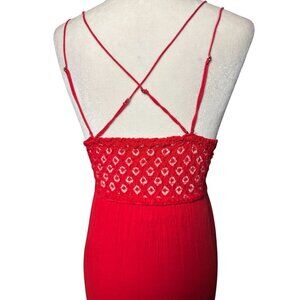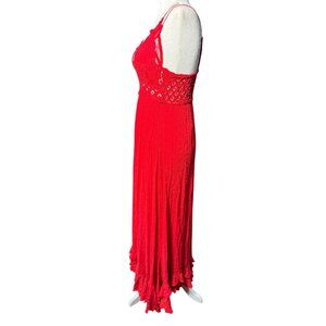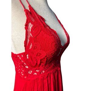 NEW Free People Size S Adella Maxi Slip Dress Sleeveless Boho Crochet Lace Red