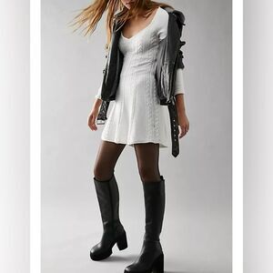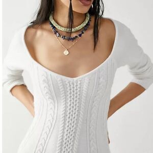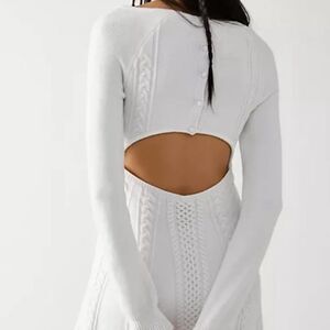 NEW Free People Small World Mini Dress Cable Knit Cutout Off White Size L