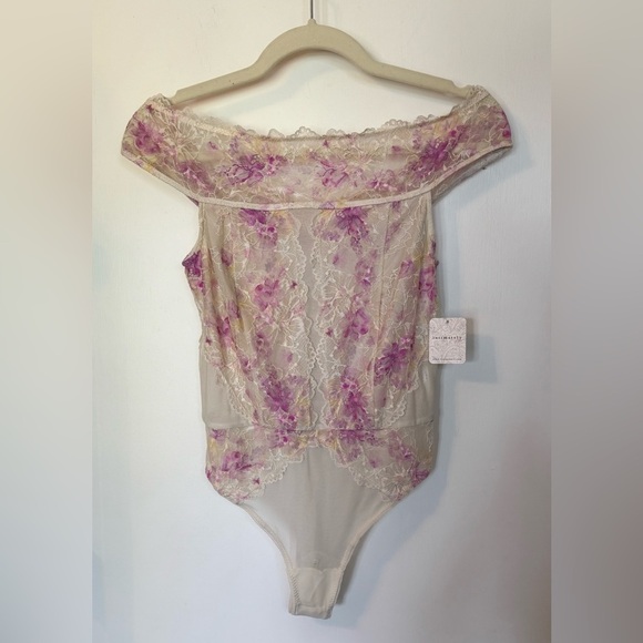 Free People Intimately Spring Soiree Printed Floral Lace Off-Shoulder Bodysuit in Ivory- brand new with tags! $88 retail