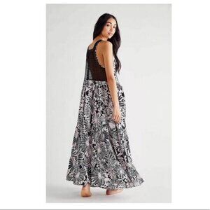 Make a statement in this so stunning floral print maxi dress featured in a tiered design with crochet detailing at the neckline and back. This cute dress has a V-neckline, flowing skirt, and wide tank straps.