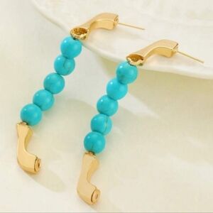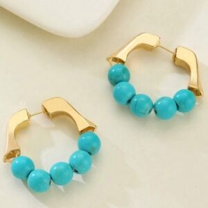 NEW!! FREE PEOPLE Turquoise Beaded huggie hoop gold plated Earrings