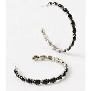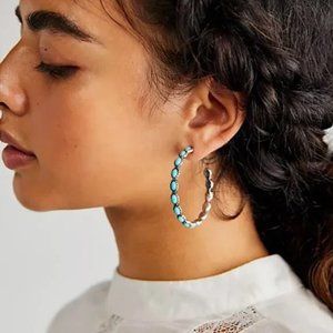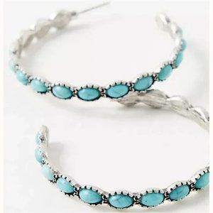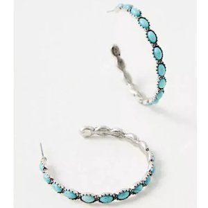 NEW ~ Free People Turquoise Stone Silver Hoop Earrings