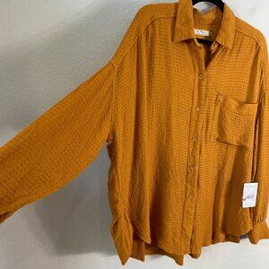 NEW Free People We The Free Autumn Pearl Textured Button Up Oversized Shirt Top