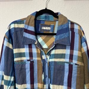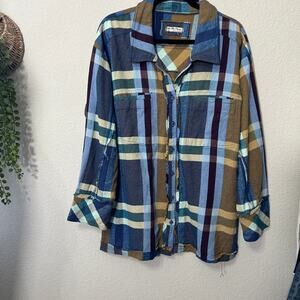 NEW Free People We The Free So Long Summer Plaid Top Blue Tan Small Shacket