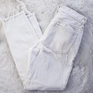 Free People White Blossom Rigid High-Rise High-Waisted Frayed Hem Ankle Jean