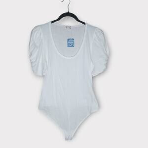 NEW Free People Womens Ava Bodysuit Size M White Puff Sleeve Romantic