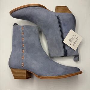 NEW Free People Women's Bowers Embroidered Suede Boots In Blue EU 37/US 7