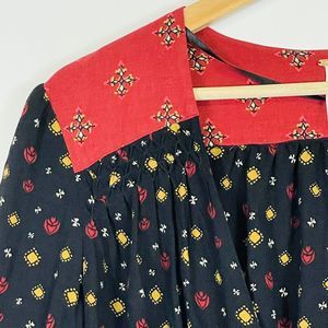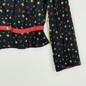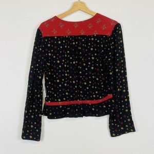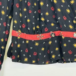 Free People Black & Maroon Where We Roam Long Sleeve Wrap Front Rayon Blouse. Womens Medium.