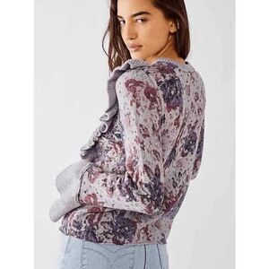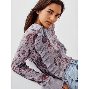 NEW Free People Womens S Love Fool Ruffled Pullover Midnight Floral Combo