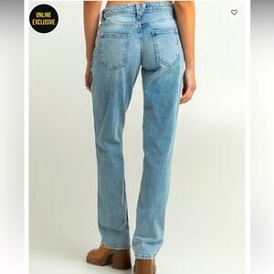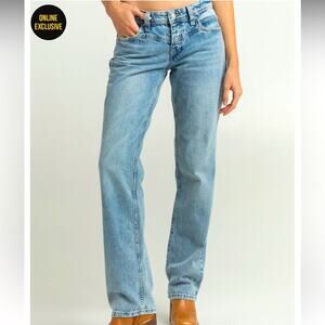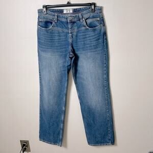 Slouchy and forever cool, these classic low-rise jeans are featured in a straight-leg silhouette and relaxed fit with front yoke seam for added shape. * Zip-fly and button closure * Five pocket design * Rigid denim fabrication 100% cotton